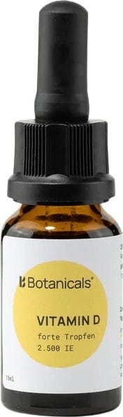 Botanicals® Vitamin D Forte Drops with 2,500 IU per drop are especially suited for targeted vitamin D supplementation during specific life stages or periods of increased need. Combined with rapeseed oil for optimal absorption. Vegetarian, gluten-free and lactose-free.
