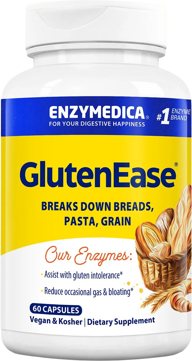 GlutenEase® contains a targeted blend of enzymes designed to break down gluten and casein. Through the use of DPP-IV proteases, the protein components of grains and dairy products are broken down into smaller parts. The formulation also contains amylase and glucoamylase. Thanks to Thera-blend® technology, the enzymes remain active across the entire pH range of the digestive tract. The capsules are purely plant-based, kosher, and non-GMO.