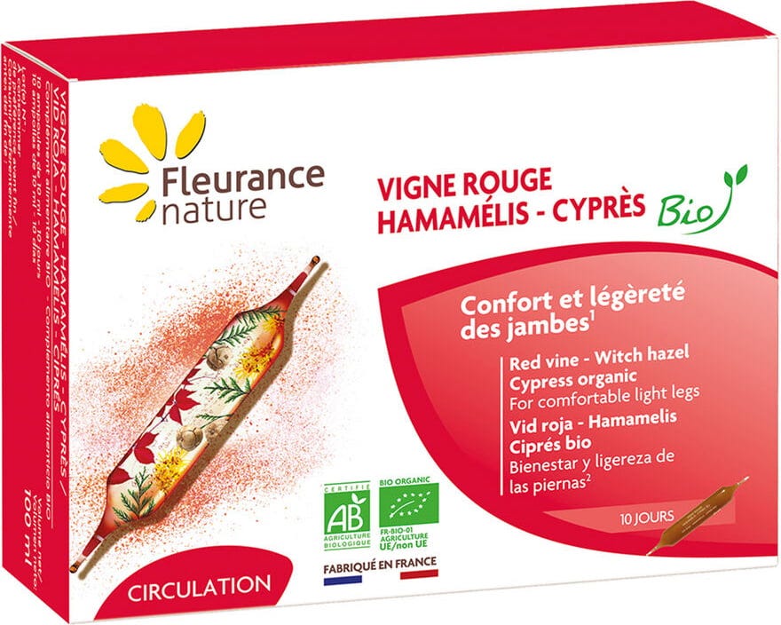 Fleurance Nature Organic Red Vine, Witch Hazel & Cypress, 10 ampoules