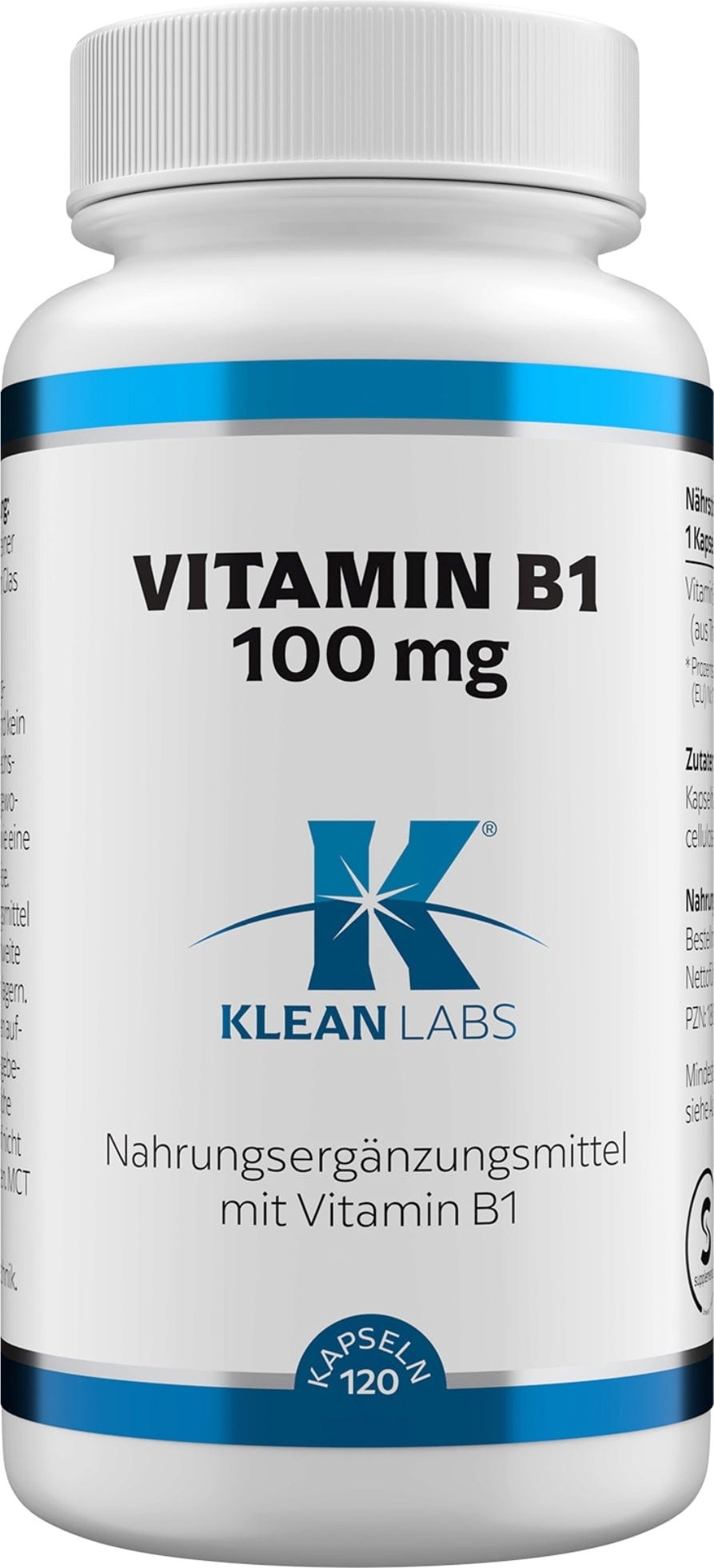 The vegan and non-GMO vitamin B1 capsules by KLEAN LABS are a great daily supplement. Vitamin B1, also known as thiamine, is one of the water-soluble B vitamins. It cannot be not stored in the body and must therefore be ingested daily through food or dietary supplements.