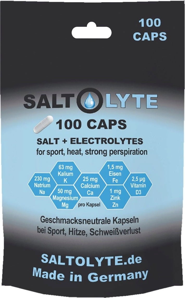 These neutral-tasting capsules contain a combination of sodium, potassium, calcium, magnesium, iron, zinc and vitamin D3. Developed for athletes with high sweat loss during sports such as triathlon, running, cycling, football or fitness. The vegetarian capsule shell ensure a pleasant intake without a salty aftertaste.